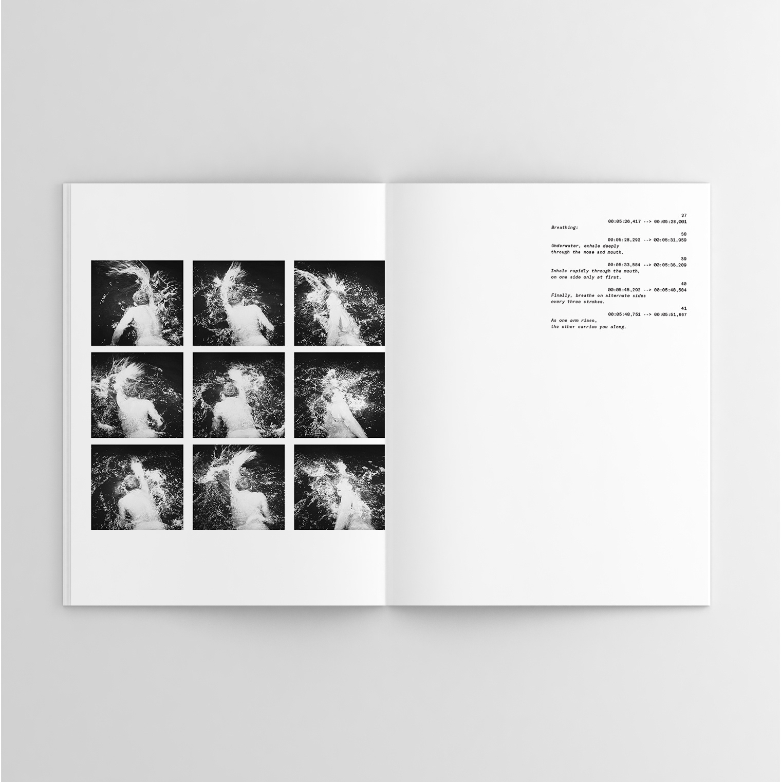 Jean Vigo — Taris, was a project developed for the Editorial Design curricular unit and is an exploration of the visual narrative of the short film Taris (1931) directed by Jean Vigo. Throughout the pagination, the film frames appear as the main storytelling element, whose rhythm and positioning is established according to the scene being represented, as well as the text that is positioned in the upper right corner, which was extracted and translated from the subtitles file, so it could be incorporated into the publication.
